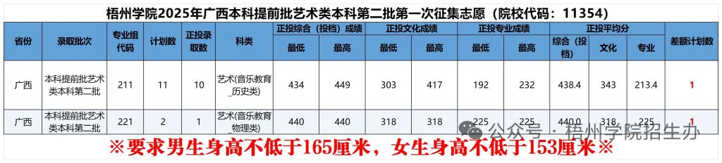 广西2025年普通高校招生本科提前批艺术类本科第二批第一次征集志愿,将于7月13日18:30至7月14日9:00进行填报。请各位考生务必在规定时间内登录“2025年普通高校招生志愿填报系统”填报征集志愿,已录取的考生不能参加志愿征集。我校2025年本科提前批艺术类本科第二批第一次征集志愿计划数如下图所示: