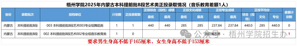 7月12日,我校内蒙古本科提前批B段艺术类正投录取工作已顺利结束。正投结束后,需征集志愿:音乐类(音乐教育)1人。具体录取情况如下: